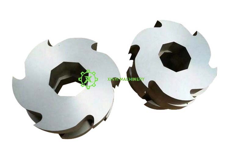 · Cuchillas trituradoras de doble eje: Cuchillas en forma de disco de bloqueo con múltiples ganchos o dientes.